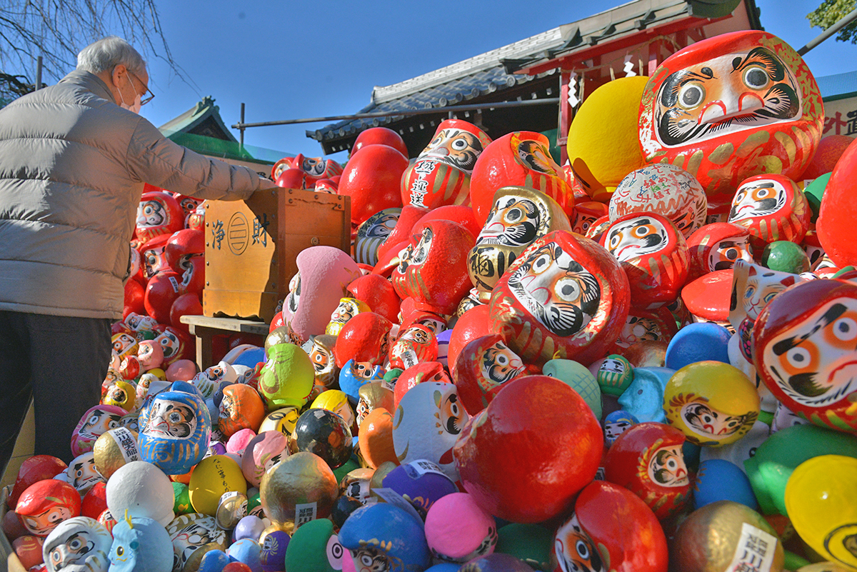江戸の初期には天台宗関東総本山の呼称を頂いた喜多院には、新しい年を迎えるに当って多くの善男善女が開運厄除、家内安全、交通安全等の護摩祈願をする人が年々増え、境内には七転八起の名物だるま市が軒をつらねるようになりました。